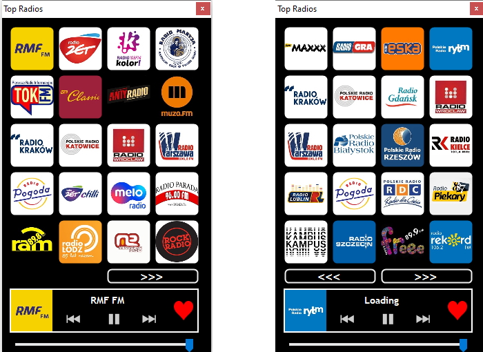 The available radio stations:RMF FM, Radio ZET, Radio Kolor, Radio Maryja, TOK FM, RMF Classic, Antyradio, Radio Muzo.fm, Radio Krakow, Radio Katowice, Radio Wroclaw, Radio Warszawa, Radio Pogoda, ZET CHILI, Meloradio, Radio Parada, Radio RAM, Radio Lodz, Muzyczne Radio, Rock Radio, RMF MAXXX, Radio Gra Torun, Radio ESKA, Polskie Radio Rytm, Radio Krakow, Radio Katowice, Radio Gdansk, Radio Wroclaw, Radio Warszawa, Radio Bialystok, Radio Rzeszow, Radio Kielce, Radio Lublin, Radio Pogoda, RDC, Radio Piekary, Radio Kampus, Radio Szczecin, Radio Freee, Rekord FM, Radio Fama, Radio eM , Radio Jura, Radio Jard, Radio VIA, Radio Kaszebe , Radio Centrum, Radio PiK, Radio Silesia, Radio Vanessa...